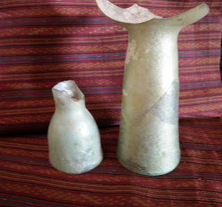 At home, we looked at the larger of the old glass bottle tops. As we turned it over, the ash fell out revealing a small bone – a finger or a toe, or only a bird bone buried for millennia.  How could it have ended up in a Roman glass bottle fragment? We never tried to find out, preferring to leave the mystery unsolved.