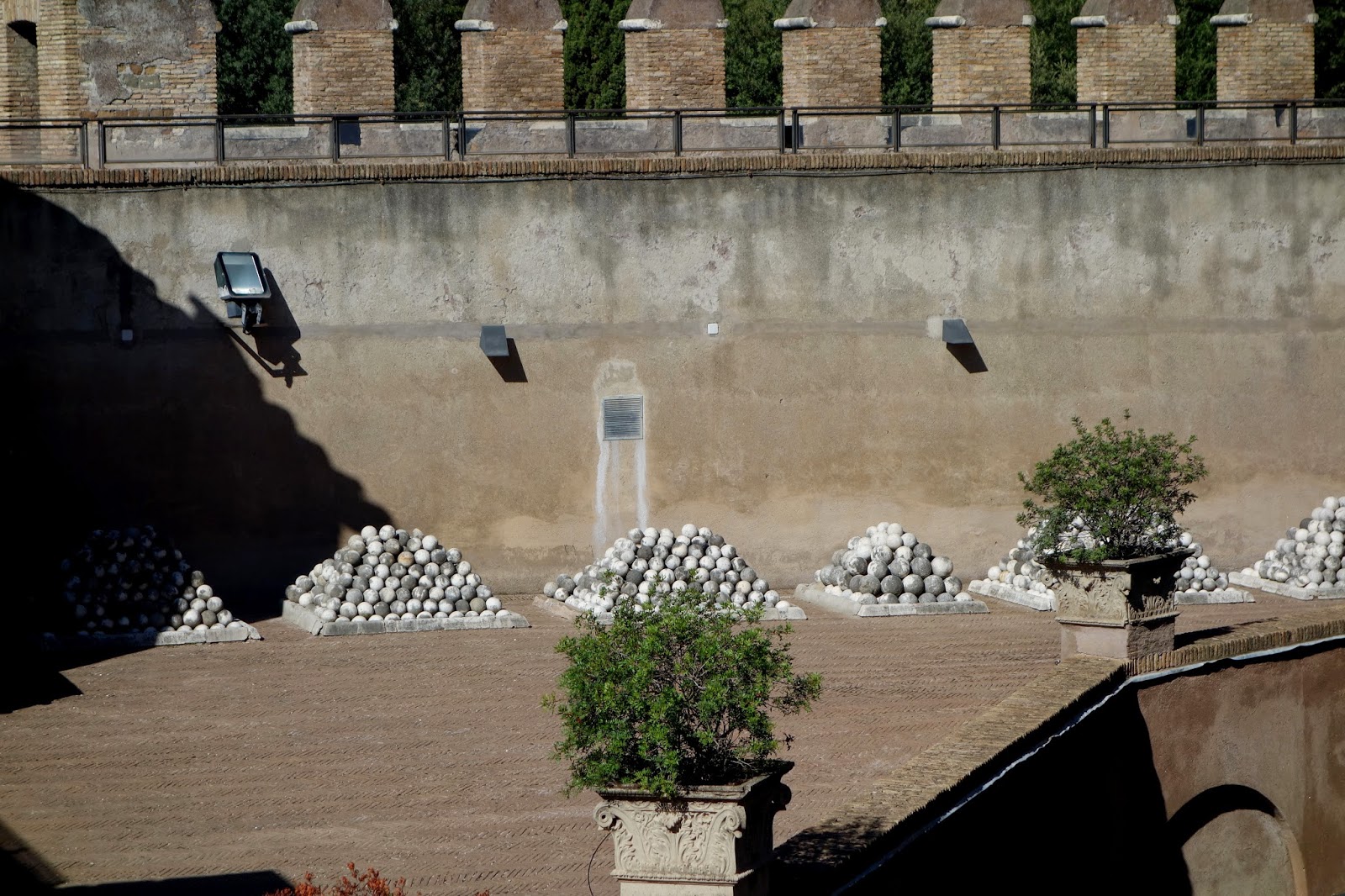 The tomb retains its basic round shape despite the centuries of rebuilding. Originally it was surrounded by cypress trees and topped by a bronze 4-horse chariot, driven by Hadrian personifying the sun. The statue was replaced in Christian times by an angel in thanks for relief from a plague. The interior has Renaissance-era canons and cannonballs but is now devoted to art exhibitions rather than defense.