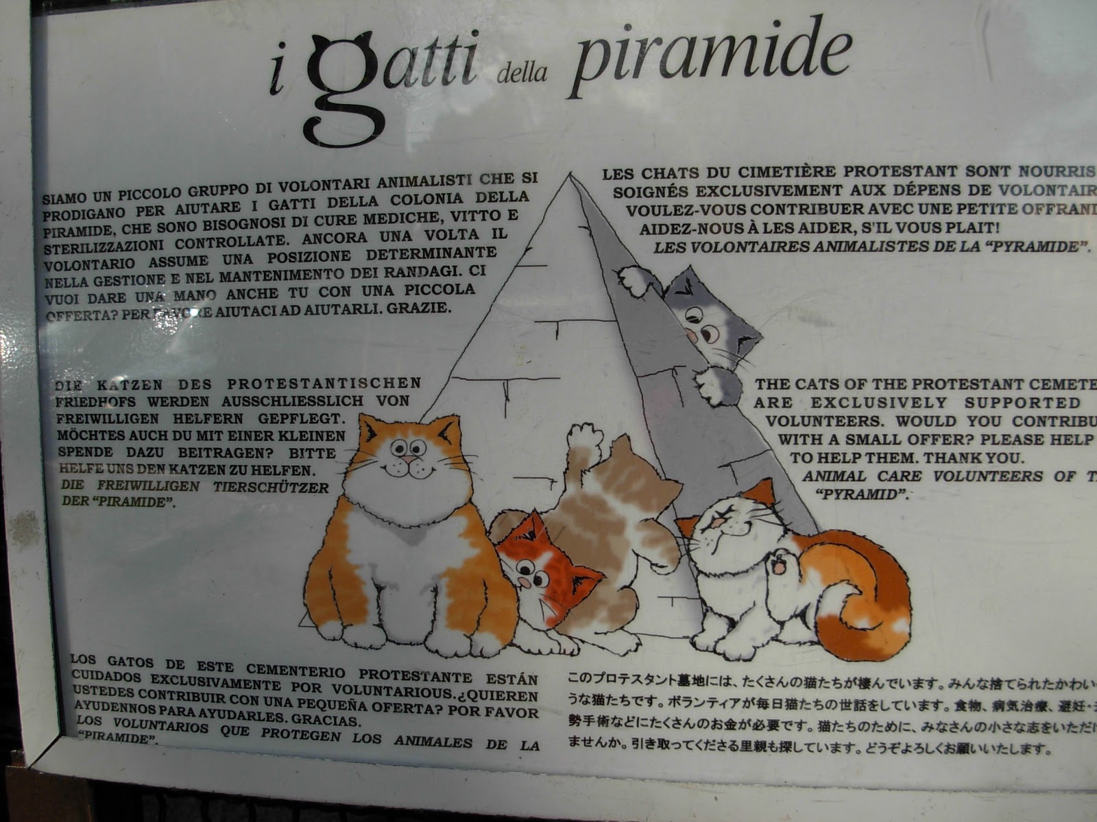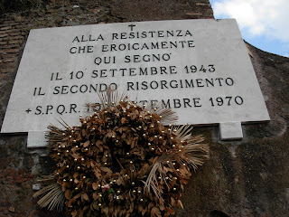 A plaque on the part of the wall broken to let the traffic through commemorates the liberation of Rome by American and Canadian soldiers on June 4, 1944. Past the gate where the wall starts again, the quiet Protestant Cemetery holds Keats’ bones and Shelley’s heart. When Glenn and I visited we saw other plaques commemorating the Italian Resistance along with many of Rome’s feral cats wandering around deserted gravestones.