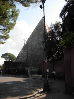 Separating the two buildings, the Porta San Paolo, originally a gate in the Aurelian walls on the road leading to the great church of St. Paul Outside the Walls, stands alone in the middle of a traffic circle. Originally it was the entrance to Rome from the port at Ostia. The walls were fortifications begun around AD 271 at a time when the Pax Romana was beginning to crumble. Now it was suffering from a different sort of assault, traffic from six roads coming together in a bumper car scenario as frustrated drivers tried to get around the gate.