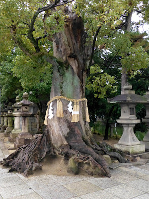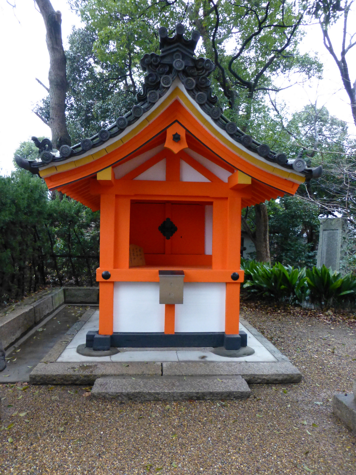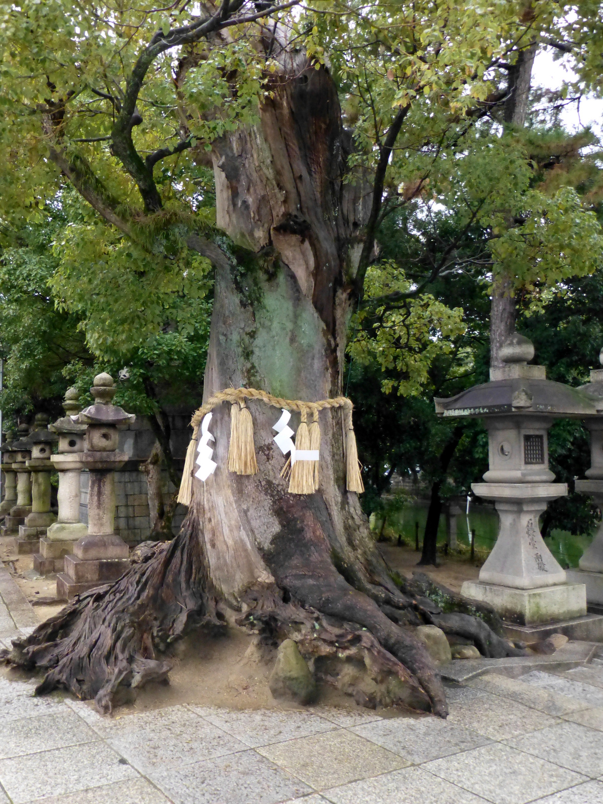 When I heard that it was an auspicious day for baptisms and weddings it seemed a good time to head for Osaka’s Sumiyoshi Taisha Shinto shrine despite the grey clouds and spring showers. The shrine, which contains a temple designated as one of Japan’s national treasures, is dedicated to various interesting and helpful deities, called kami, who ensure safe travel, good fortune in marriage, safe childbirth, business prosperity, family welfare, military valor and beauty. Because of its association with marriage and family it is an especially favored spot for traditional weddings.