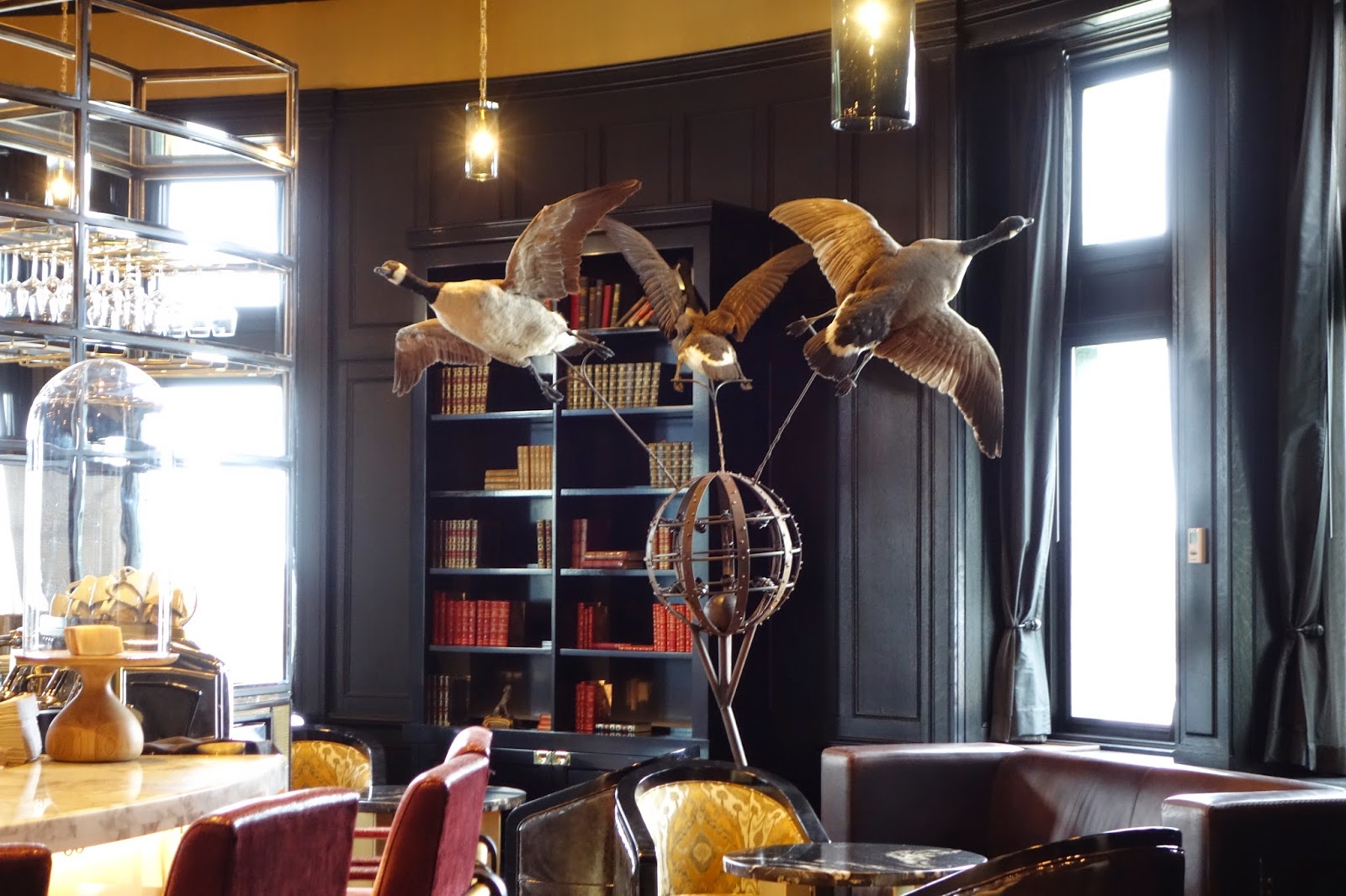 The gorgeous décor features a globe with three Canada Geese winging their way. One appeared to be flying in a southerly direction. When we put our empty glasses down we followed its lead.