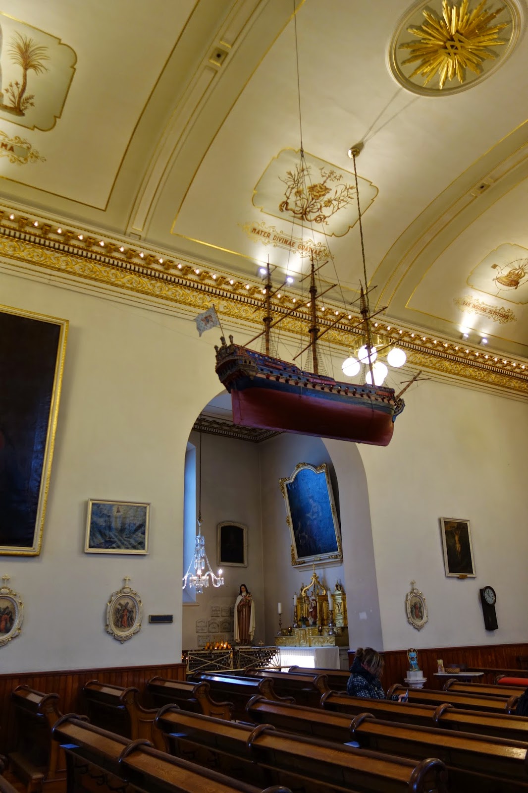 Discarding the idea, we warmed up in the lovely small church of Our Lady of the Victories, named after the French who resisted two British sieges, one in 1690 and the other in 1711. The ship model hanging in the nave is the Breze, a 17thcentury vessel that brought French troops to Quebec.