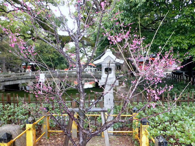 When I heard that it was an auspicious day for baptisms and weddings it seemed a good time to head for Osaka’s Sumiyoshi Taisha Shinto shrine despite the grey clouds and spring showers. The shrine, which contains a temple designated as one of Japan’s national treasures, is dedicated to various interesting and helpful deities, called kami, who ensure safe travel, good fortune in marriage, safe childbirth, business prosperity, family welfare, military valor and beauty. Because of its association with marriage and family it is an especially favored spot for traditional weddings.