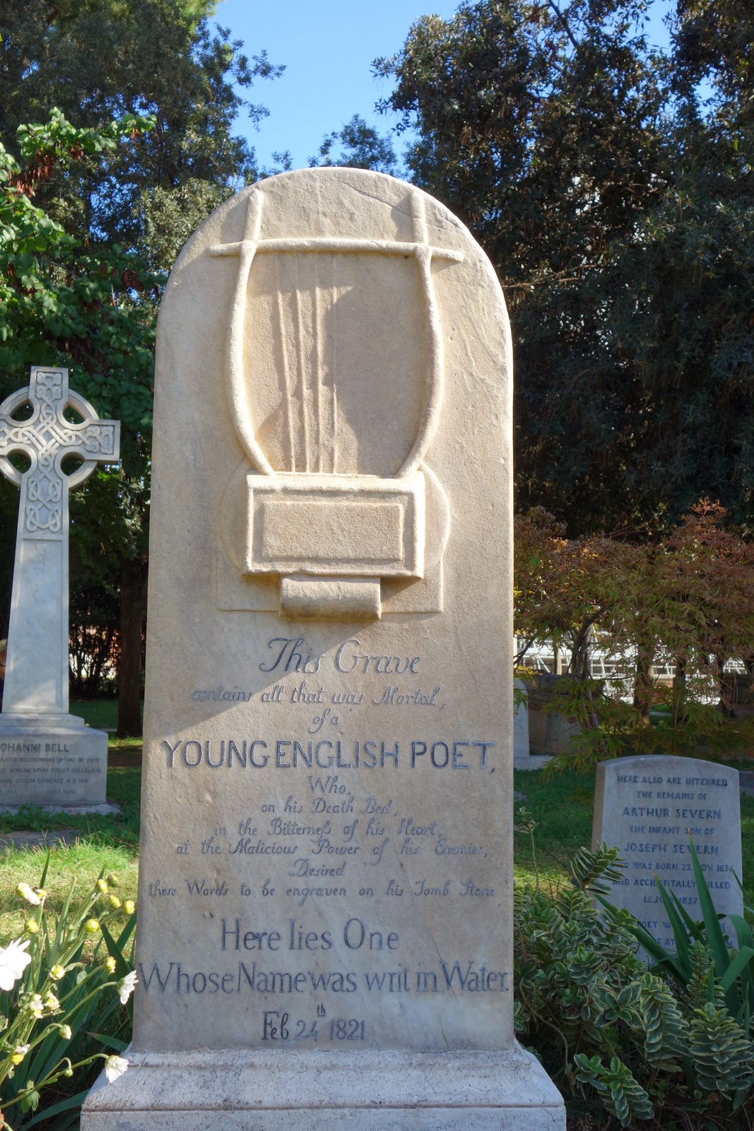 “This Grave / contains all that was Mortal / of a / Young English Poet / Who / on his Death Bed, in the Bitterness of his Heart / at the Malicious Power of his Enemies / Desired / these Words to be / engraven on his Tomb Stone: / Here lies One / Whose Name was writ in Water. 24 February 1821″