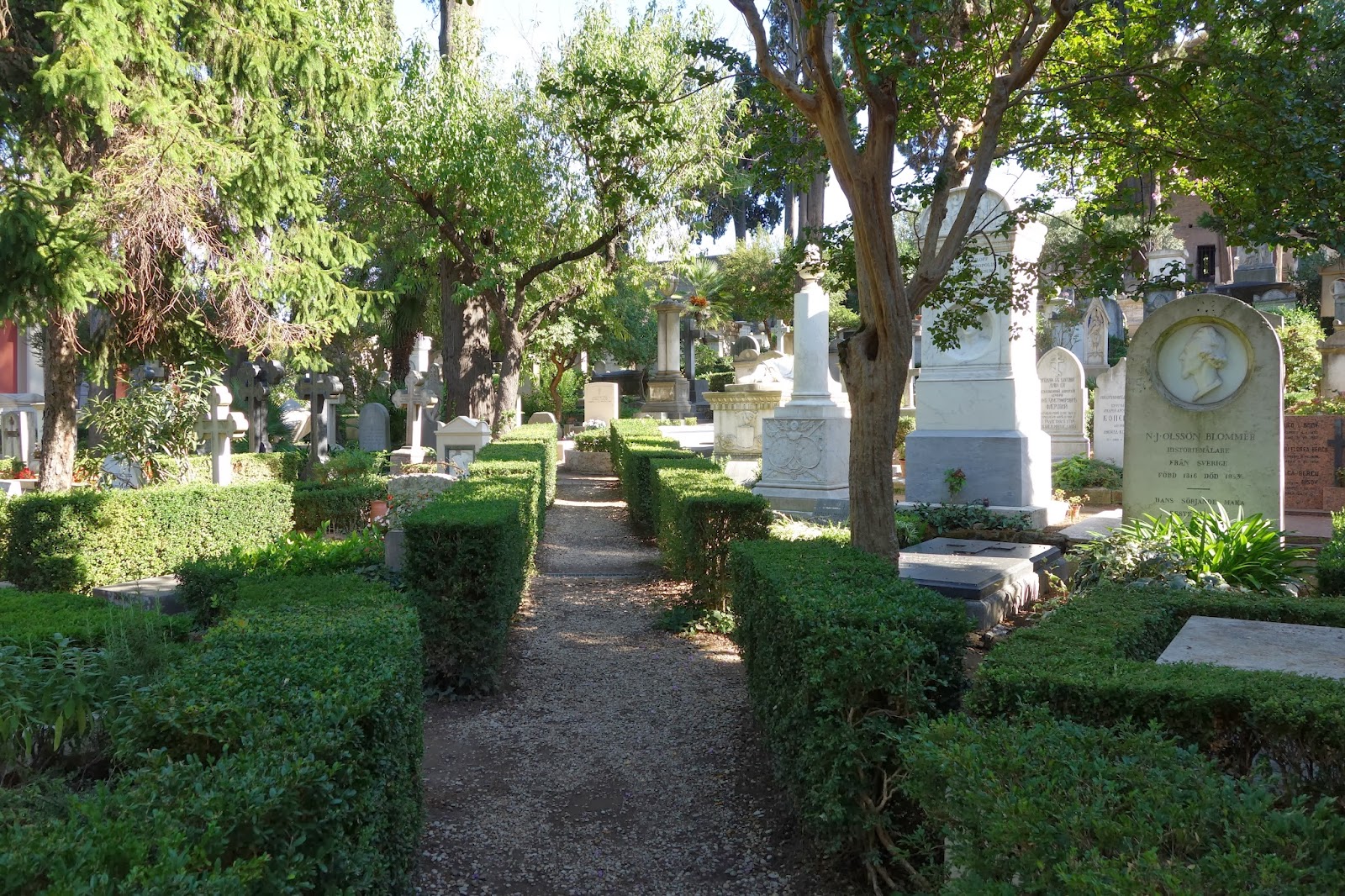 The real name of the resting place of so many is The Non-Catholic Cemetery, and although it does contain the dust of many 18th Century Englishmen who fell while taking their Grand Tour, there are tomb inscriptions in fifteen languages representing about every known non-Catholic religion and the non-religion of Antonio Gramsci, the founder of Italian Communism. The oldest tomb is that of an Oxford graduate who was buried in 1738. Among other interesting bones are those of Goethe’s only son, designer Irene Galatzine who (unfortunately) gave women palazzo pants, and Richard Henry Dana, Jr. who wrote Two Years Before the Mast. Henry James decided that Daisy Miller should be “buried” here.
