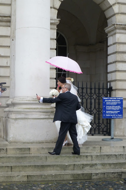 We returned to reality with a wedding party outside. It was raining but one of the groomsmen protected the bride with an umbrella while families gathered to help celebrate. It doesn’t take rain to stop happiness.