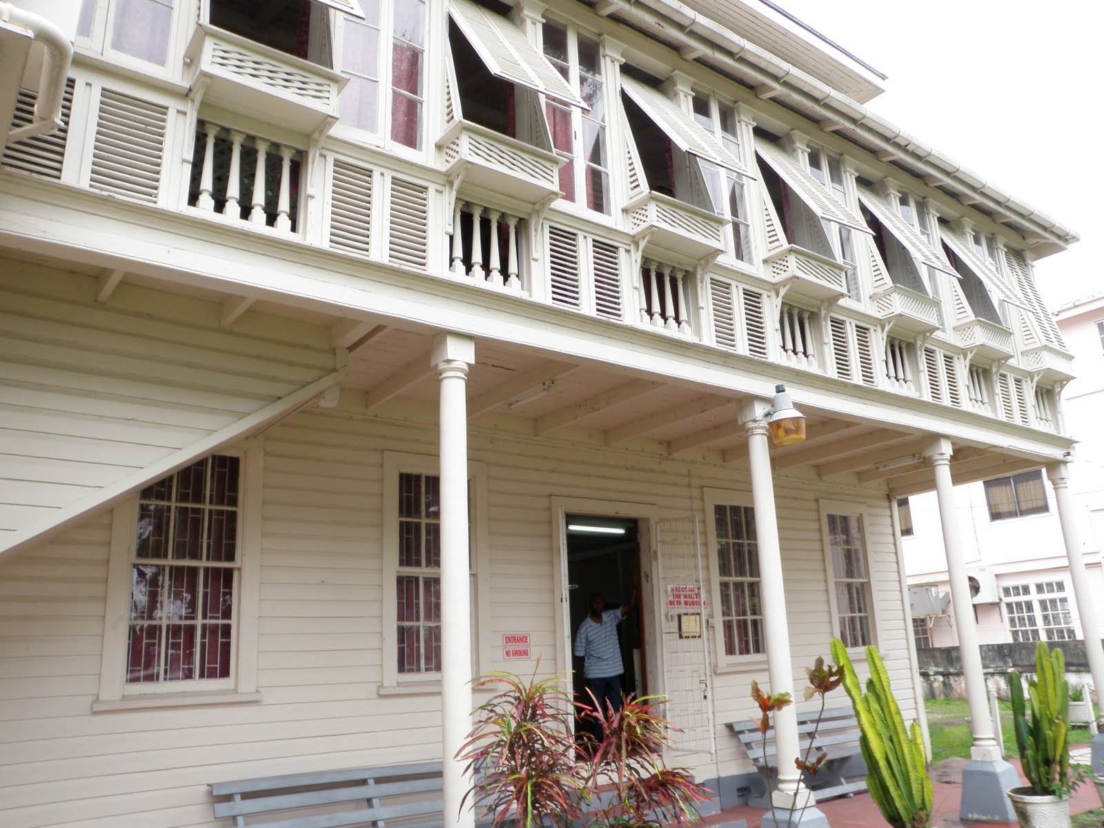 We passed by the Stabroek Market built of iron and steel in 1881 when the British were ascendant. I was ready to hop out and do some shopping. “NO – too dangerous,” said the guide as the van sped on to our next destination. Then I looked out the window beside me to see an outrider in full body armor on a motorcycle next to the van with army vehicles in front and behind. Apparently Guyana isn’t ready for tourist prime time.