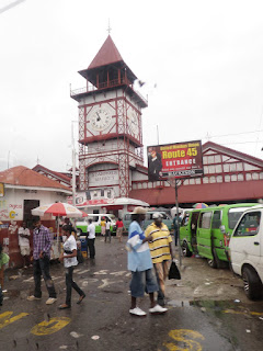 The heavy clouds opened up as we started towards two small vans awaiting us – one for the French passengers and another for us and the French who wanted to practice their English. Off to town we went – a collection of mostly dilapidated buildings stained with mold and potholed roads filled with puddles interspersed with a few beautifully kept Victorian-era wooden buildings with boxes for ice below the windows to cool the tender colonialists as they administered the country.