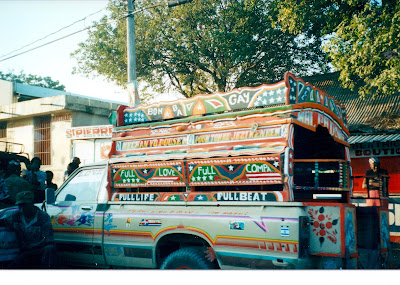 The road to the office from the hotel led along steep, narrow, winding, unpaved pot-holed roads. Women were selling a few fruits and vegetables spread on the ground and urchins tried to polish shoes or sell packets of tissue or gum. Occasionally, a man had a display of tin sculptures for sale. Pickups made into mini-buses hurried by loaded with people. The colorful vehicles were painted with slogans and designs. One had “Full Life, Full Love, Full Beat, Full Compa” along with “Bomba” and “Gay.” Rounding out the decorative scheme was a painted Israeli flag, various Chinese characters, stars, flowers and waves. The colors seemed a demonstration of defiance against the drab sea of crushing poverty.