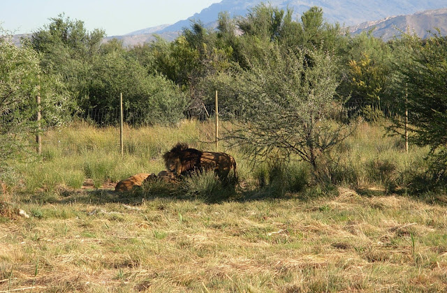 The Cape lions, apparently extinct in the wild, were in a separate enclosure, the only zoo-like aspect of the game preserve. The guide opened both gates and we drove in. She closed the gates and turned the key in the ignition. It wouldn’t start. There we were like a pair of Daniels in the lions’ den. A tense few minutes followed while she radioed for backup. Fortunately they weren’t hungry. While we waited for help, we watched as the black-maned male mated with one female while the others in the pride napped in the shade of a few trees in the hot afternoon, uninterested in the coupling next to them.