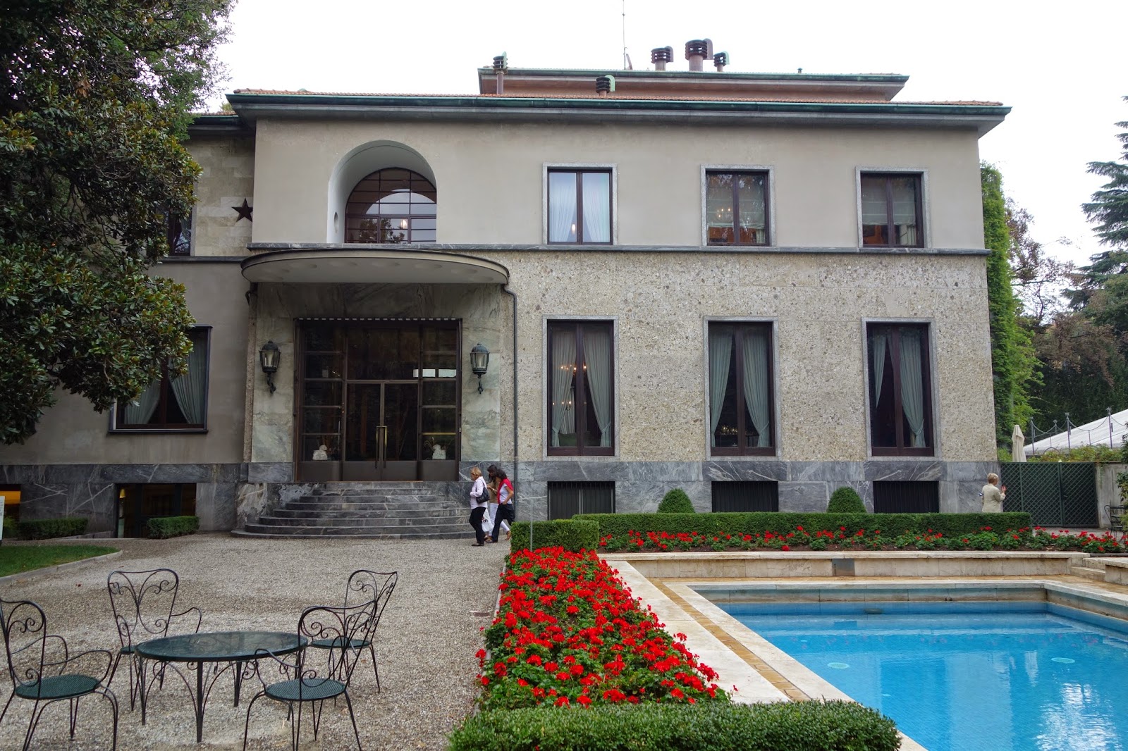 Built, built between 1932 and 1935, with its gardens, tennis court and swimming pool gives a taste of the rich life of a prominent industrialist. My favorite room is the Veranda with huge windows that slide open in the summer, inlaid marble floor, pale green S-shaped sofa, and a lapis-lazuli table set with blue Chinese vases. It was easy to visualize the former occupants reading or chatting with friends like the Kings of Italy and Spain who dropped by to visit.
