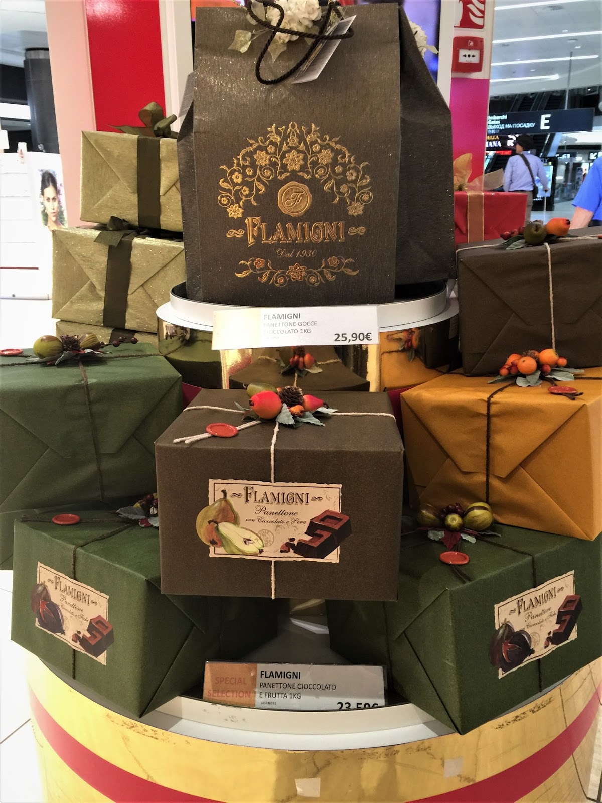 Actually, it’s the holiday season. In the US this means from Thanksgiving to New Year’s day. So I have about five weeks to indulge in my favorite treat: panettone, that traditional sweet and oh-so-delicious Italian Christmas bread. About the first of November the stores, even in my corner of Puget Sound in the Pacific Northwest, begin stacking up the colorful boxes in windows and shelves and I begin loading up the shopping cart. The bread is distinctive – tall and domed and nestled in a paper cuff. The height comes from letting the dough rise three times over a period of 20 hours. It usually weighs a kilo (just over 2 lbs.) and is sturdy enough to last for days without going stale tho’ probably not as long as my mother’s fruit cake that was tough enough to survive a dogsled trek to the North Pole. The packaging, which gets ever-more elaborate, almost always features a ribbon handle or bow all the better to carry it home. During our time in Italy, I often crowded into a jammed car on the Metro to share what little space there was with others toting their own panetonne.