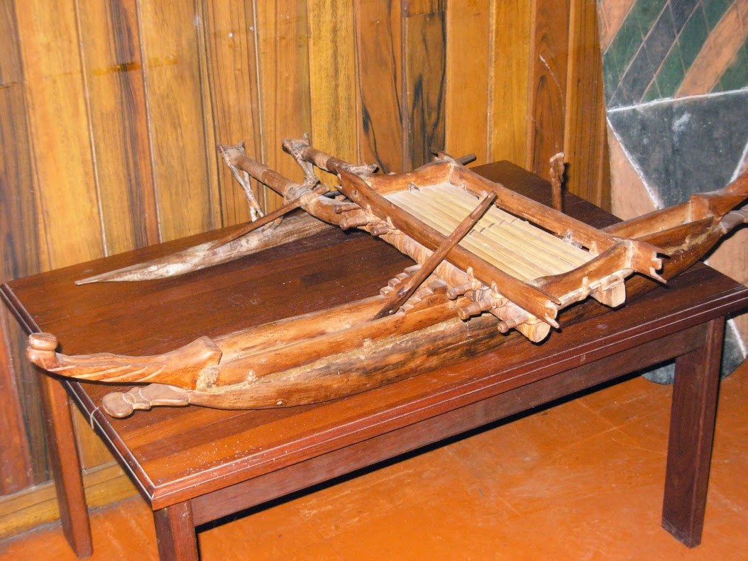 Near the dock a copra-processing plant was in operation. As we stopped to take a look, one of the workers ambled over to tell us the processed coconut meat would be shipped to Australia for cattle feed. We walked on to the tiny museum. I managed to snap a photo of a sea-going outrigger but was shooed away when I wanted to photograph more artifacts.