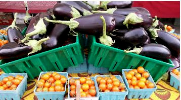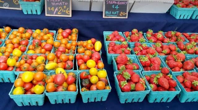 Not wanting to expose our delicate bodies on a cool day we turned back to the main road and lunch in one of the many good restaurants waiting for us. One of my favorites is Sweet Laurette, a funky cafe/bistro where you can sit outside. It was market day next to the bistro so of course we loaded up with fresh produce for snacks.