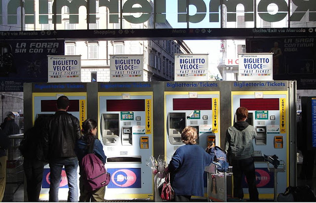 After fruitless efforts to book on-line, we headed to the crowded and pickpocket-ridden Stazione Termini to get tickets from an agent who could advise on schedules. But when we saw the number 578 on the slip from the take-a-number machine, there was nothing to do but confront the row of hostile vending machines known to eat victim’s credit cards and refuse to produce tickets. Many were “guasto,” the ubiquitous word for “broken” or “out of service.” I found one that appeared to work and gingerly stuck my credit card in the slot. A whirring noise and two tickets for Catania and my card miraculously appeared.