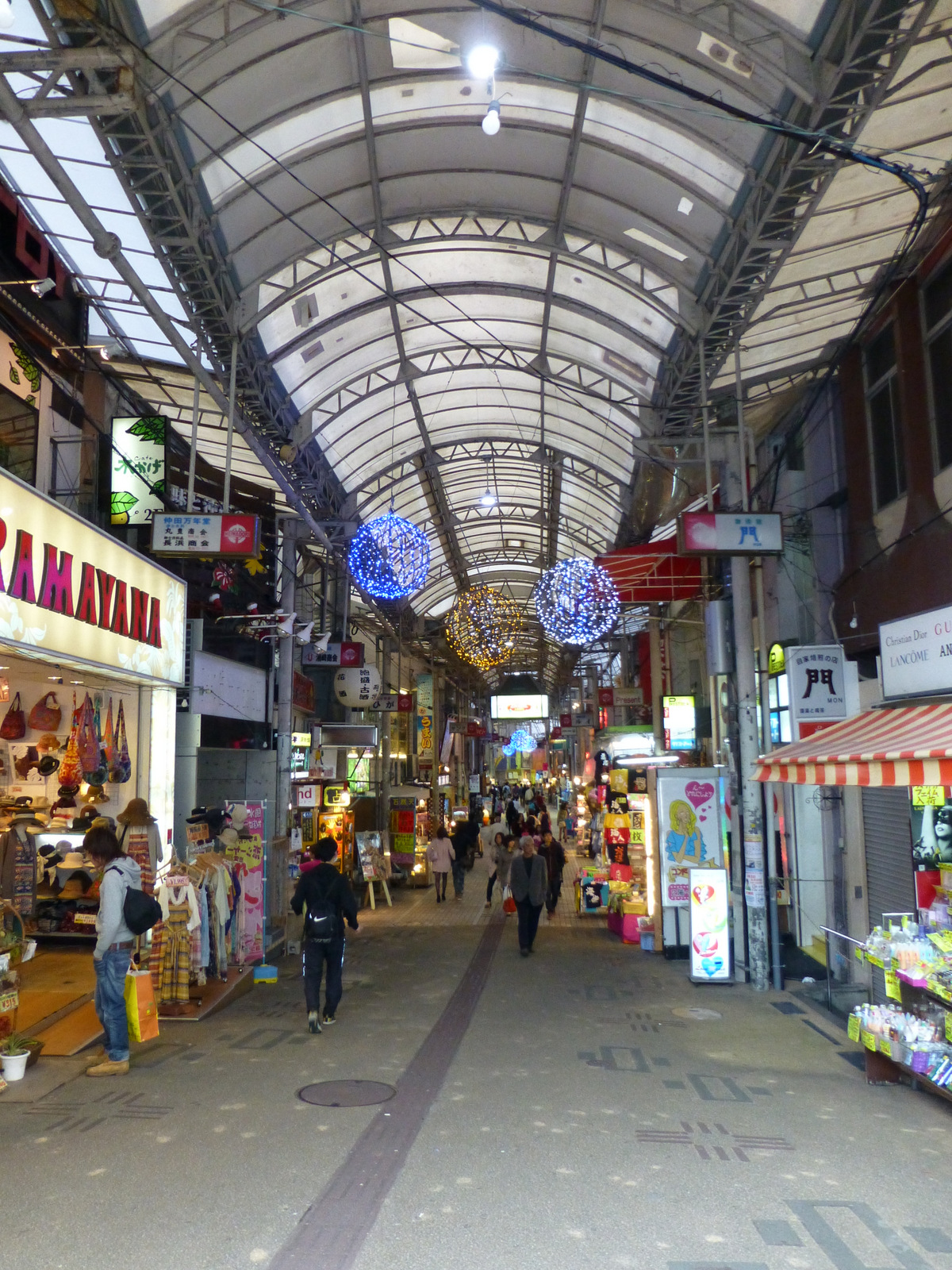 The street was lined with fast food restaurants, liquor stores, ATMs, cheap jewelry and clothing; the usual commercial items found in other Japanese cities, although with a more warm-weather aspect in light of the climate that is more like Hawaii or Southern California.