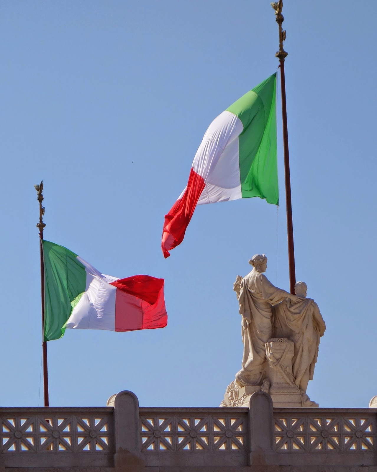 Except for the monument to Vittorio Emmanuele II that shocks the eye with its dead white mass. So out of character with the rest of the city. It’s often know as the wedding cake or typewriter.