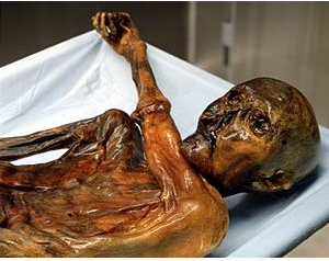 Not a mummy like those in Egypt, bandage wrapped with their internal organs removed to jars, Otzi is nearly whole – except for his penis reportedly stolen when he emerged from the ice on the Italian-Austrian border in 1991.