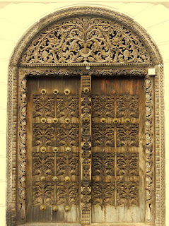 The next day we strolled through the town watching men brewing coffee over tiny charcoal fires, women in their colorful garb and ancient carved doors of Indian design, said to he heavy enough to ward off elephants.